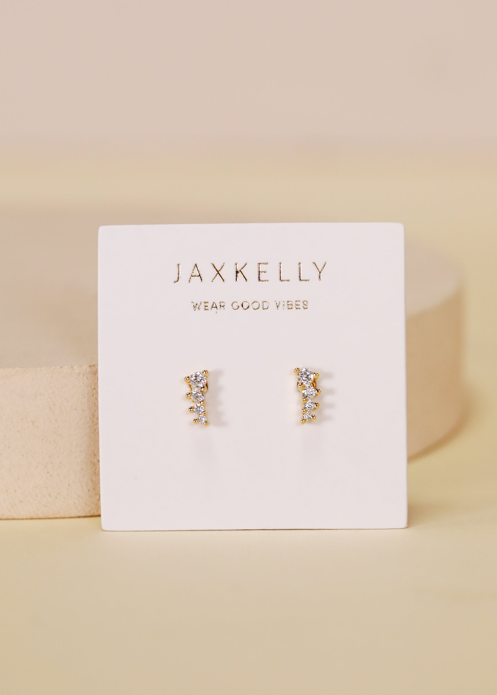 Mini Crawler - White CZ - Gold Earrings