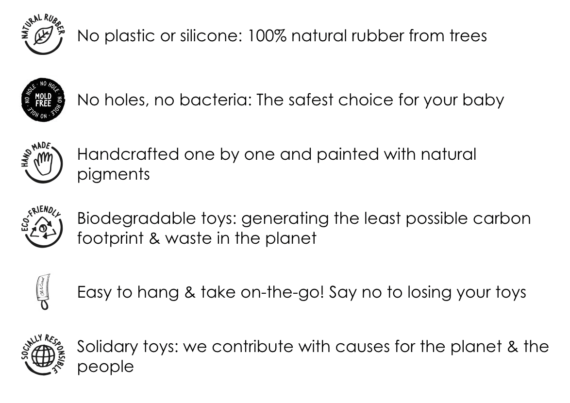 - Store in a dry place. If left on the side of a bath or on tile that may be slightly wet or moist, the toys will start to mold (like any natural products). Air drying between use, is recommended.