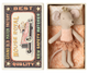 A small plush toy which is perfect for a tiny hand. The mini sized chicken has the sweetest look and a very soft hand feel. The small legs are made of knitted string with golden effect.