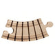 The large curve track for your NameTrains wooden railway layout is compatible with similar track and trains from other manufacturers. Crafted from locally sourced, responsibly harvested hardwood, this piece of large curve track represents 1/8 of a circle, is grooved for wheels on one side, 8 large curve pieces will form an approximate 17" diameter circle.