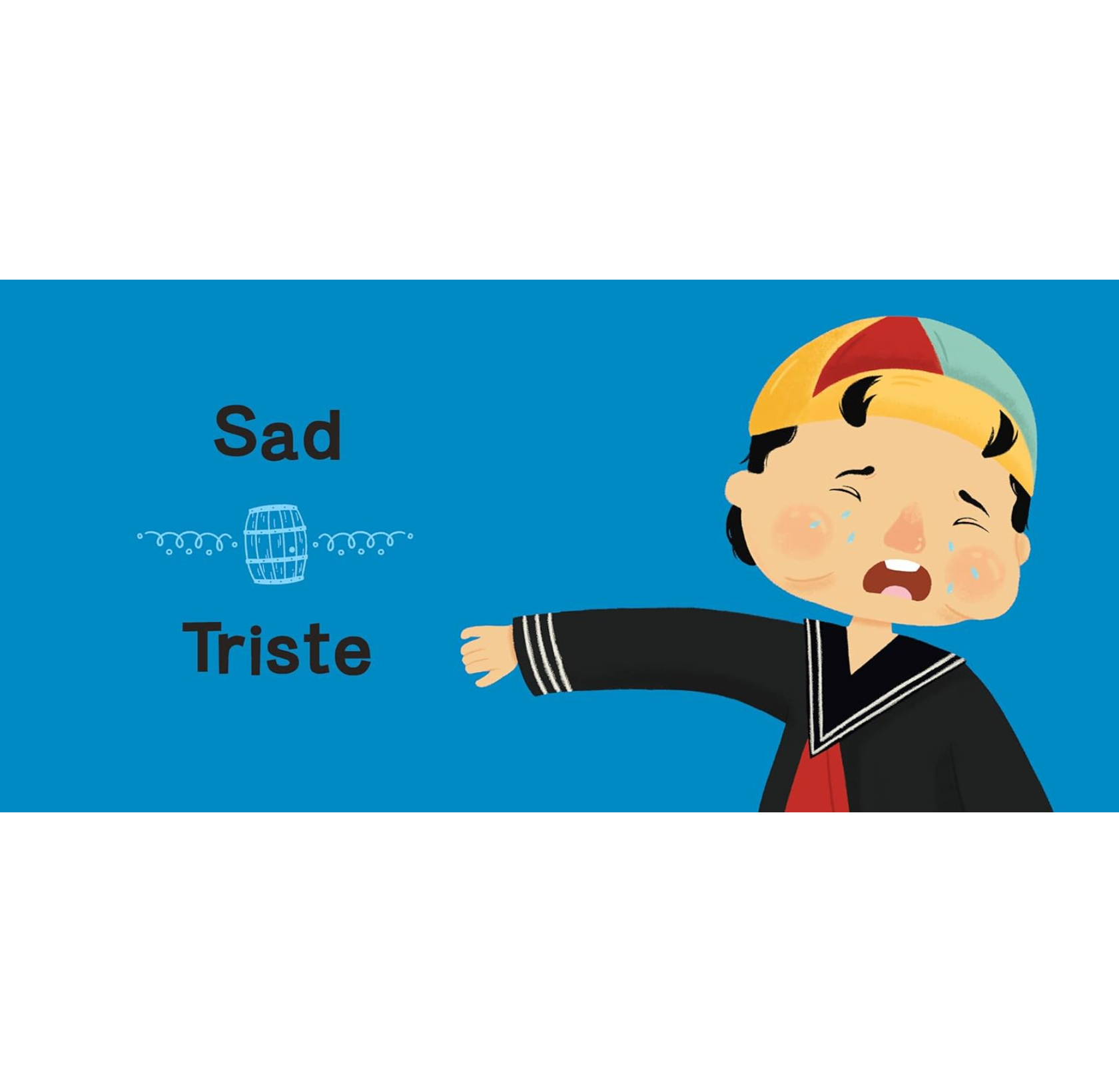 In theme with the hilarious sitcom “El Chavo del Ochoa,” introduce your little ones to a collection of emotional expressions in both English and Spanish!