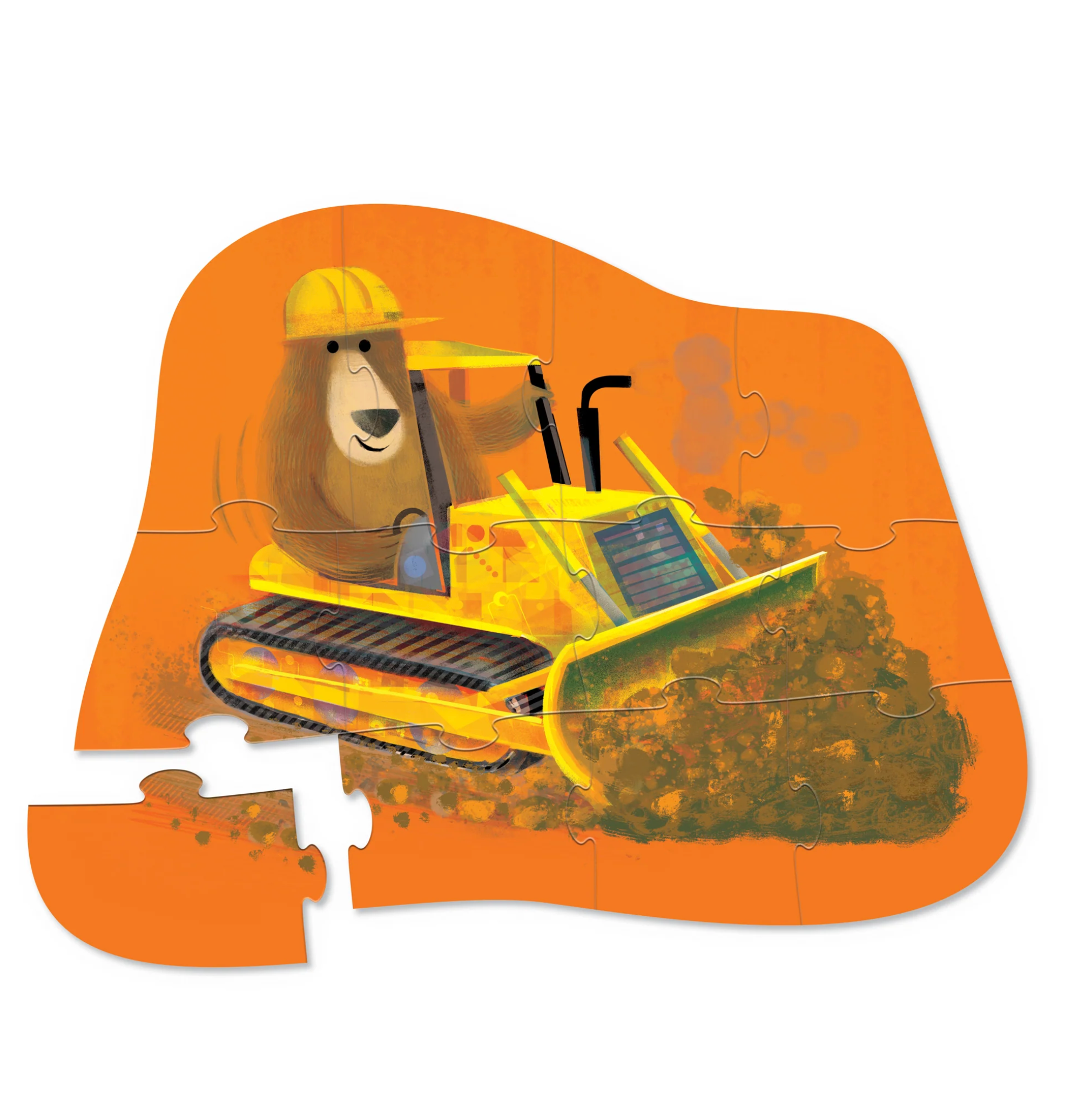 Go Mister Bear! Our earth-moving Builder Bear puzzle will delight any little enthusiast wowed by rumbling giant construction vehicles! Featuring bold colors and a whimsically illustrated puzzle that encourages hand-eye coordination and problem-solving. Great for interaction between a parent and child that can be used over and over. A sturdy box makes for easy storage and its small size is perfect for travel.