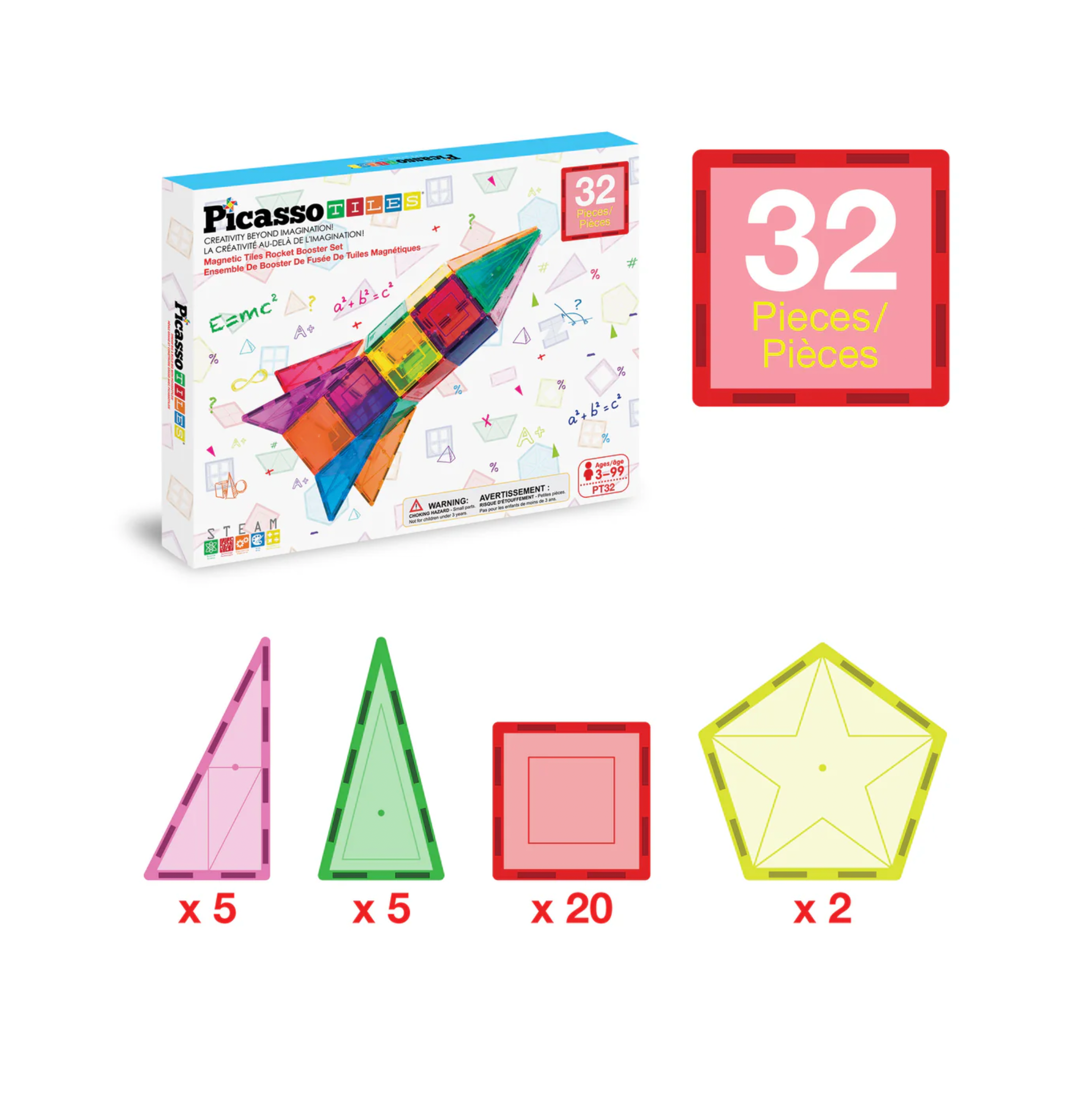 Blast off on interstellar voyages with the PicassoTiles magnetic tiles rocket ship toy set. Let aspiring astronauts craft their own spacecraft with easy-to-use magnetic construction building blocks. Get ready for an out-of-this-world journey!