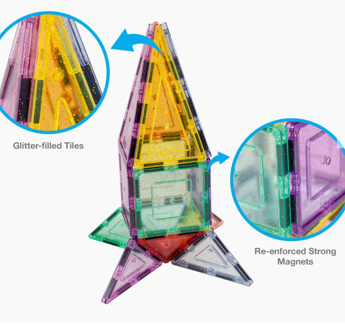 Built-in reflective flakes and pastel color magnetic blocks to give the building tiles a refreshed new look!
