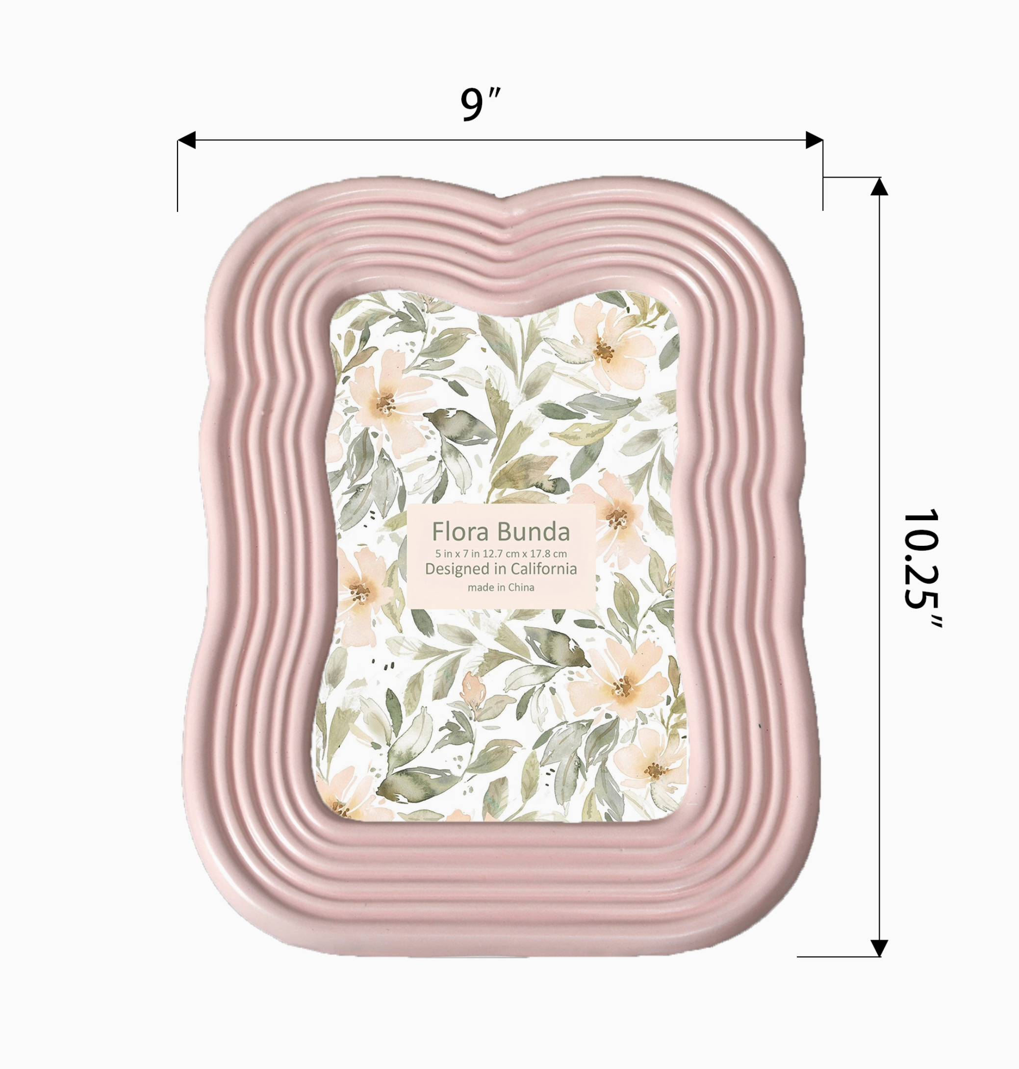 Introducing 5x7 Curves Ceramic Matte Peach Frame- a blend of timeless elegance and modern design. Handcrafted by Artisans, this 9”x0.5”x10.25” frame comes in a matte peach colorway and curved line detailing making it both a trendy and unique piece for your home. Showcase your most treasured memories while adding a new touch to any space!