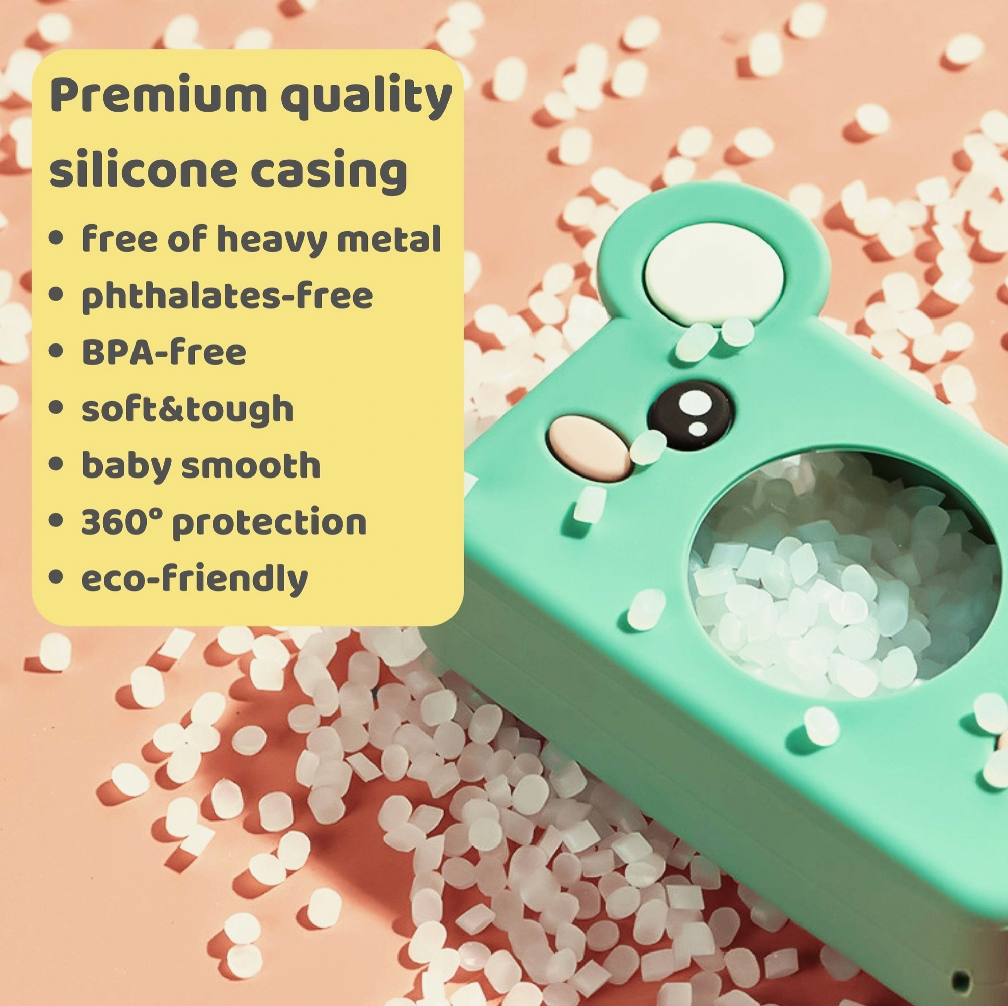 Introducing Model C, the perfect camera for kids aged 3 to 7. Its compact design fits comfortably in their little hands, while the soft silicone case (food-grade) absorbs rough play. The lanyard doubles as a charging cable, making it an ideal travel companion. This camera offers everything that a budding photographer would adore in their first camera.