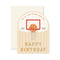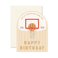 A fun birthday card for the baller in your life with full color and gold foil, ivory matte envelope. 4.25" x 5.5" arch die-cut folded card. Blank interior.