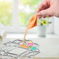 Add color and shine to your windows! This kit includes eight vibrant colors of crystal bead packets to create your color block artwork in the two metal frames. Melting Beads and frames are baked in the oven to set.