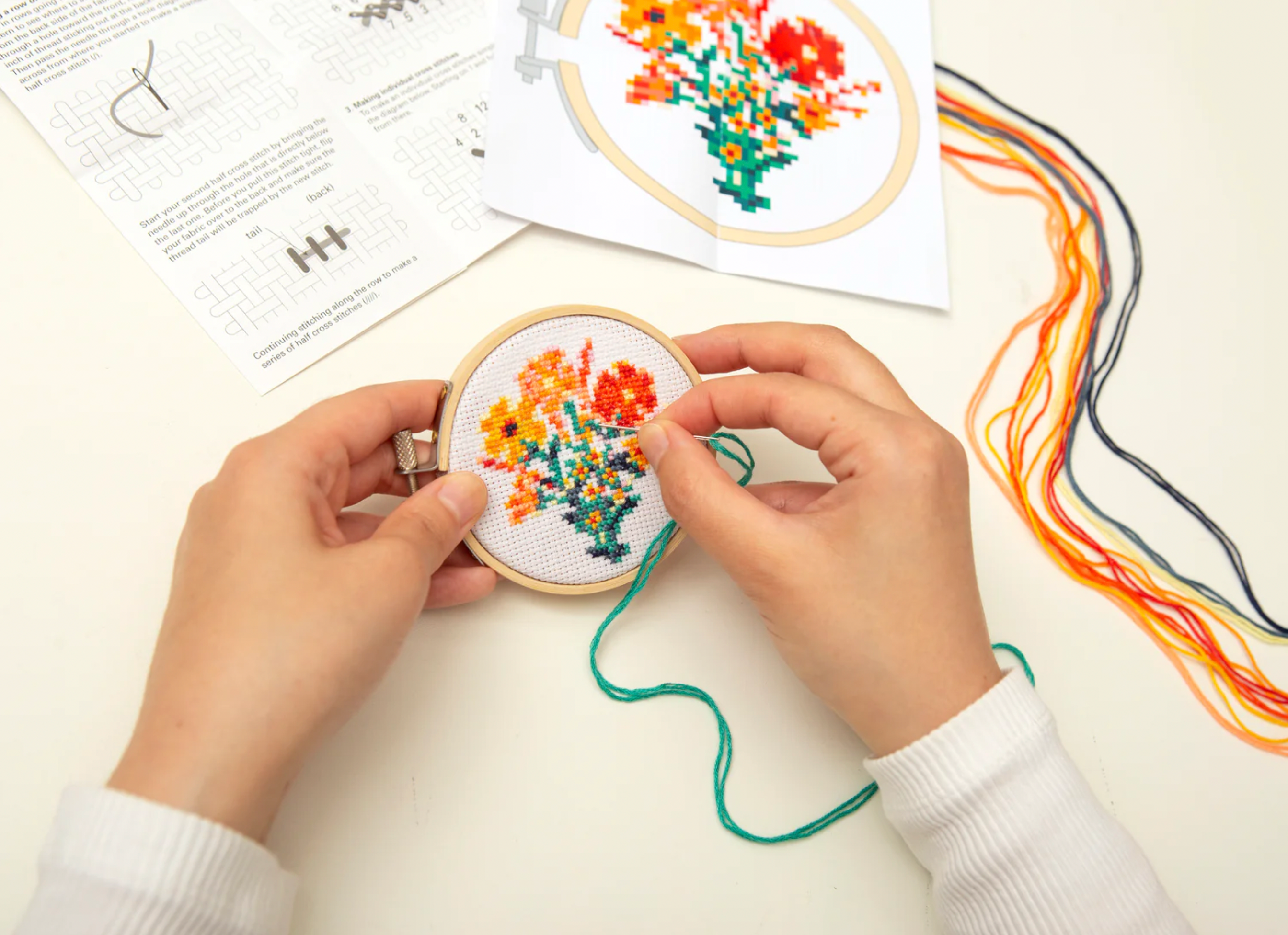 Relax at home, at work, and on a mini-embroidery. This beautiful flower embroidery kit includes a bamboo hoop frame, canvas to stitch on, color threads, and 1 needle— everything you need for your new hobby. Plus one pattern guide and helpful tips on getting started. Happy stitching!