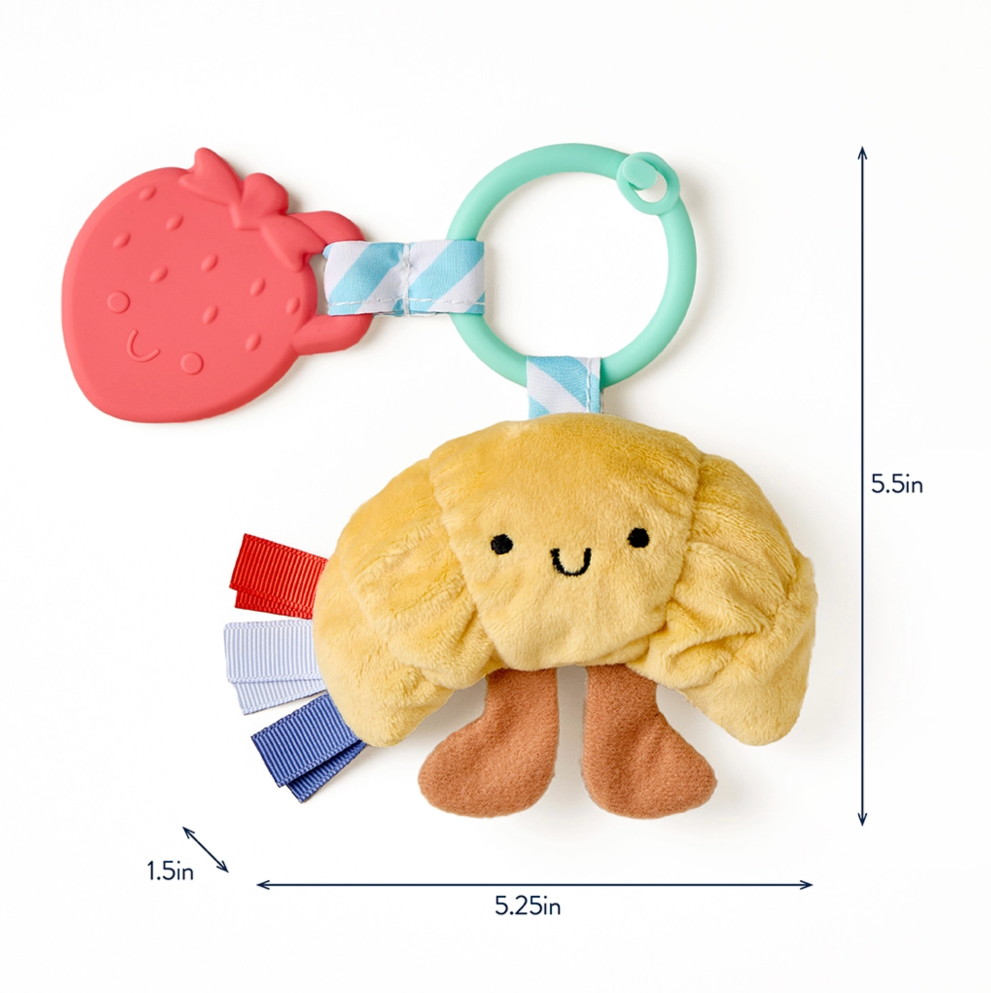 Chloe the Croissant! The Itzy Pal™ joins your little one as the most playful (& cutest!) pal on the block! Let baby discover the soft plush character, gentle silicone teether to soothe sore gums, engaging crinkle sounds and colorful textured ribbons.