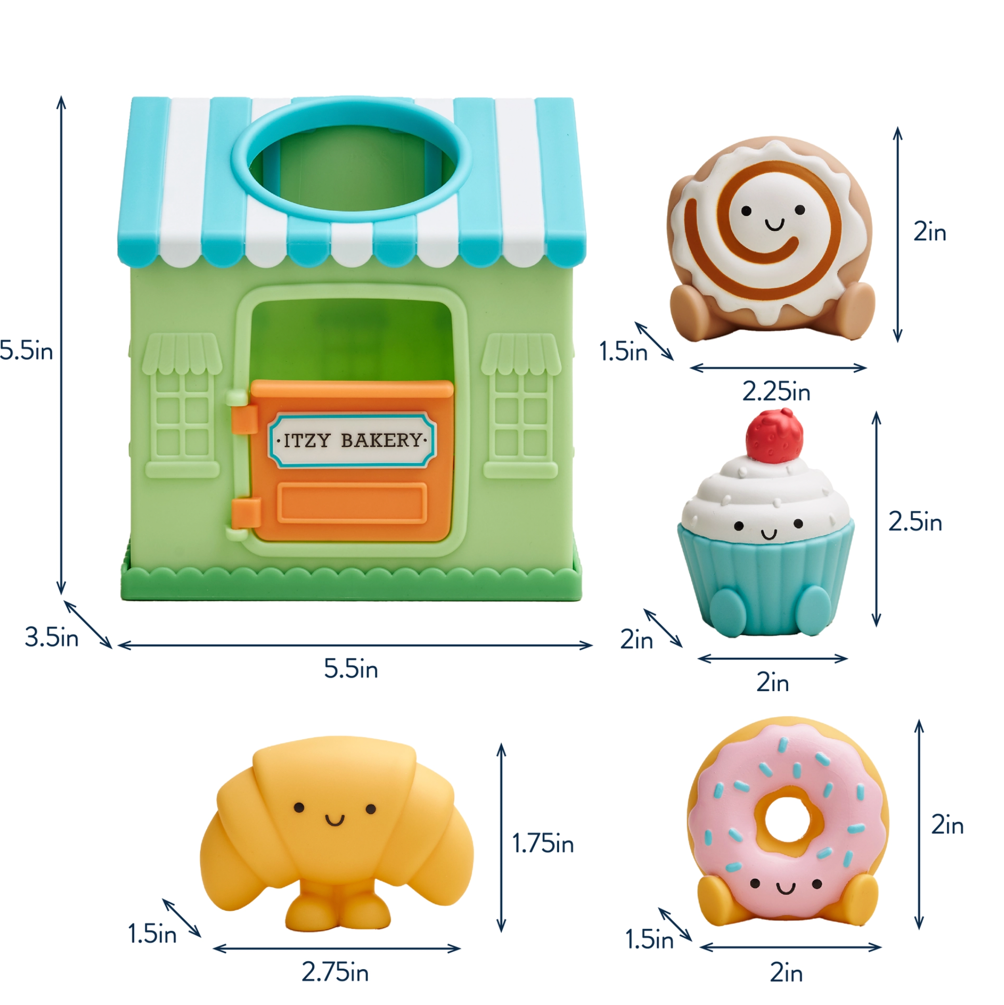 Donut Worry, Be Happy! Learning is sweet with Itzy Play Bakery™ spill and fill activity toy! Featuring a mini bakery with hinged door and rooftop opening plus four soft, squeezy sweets, your babe’s imagination will go through the roof as they explore put-and-take play, learn object permanence, and create endless storytelling adventures.