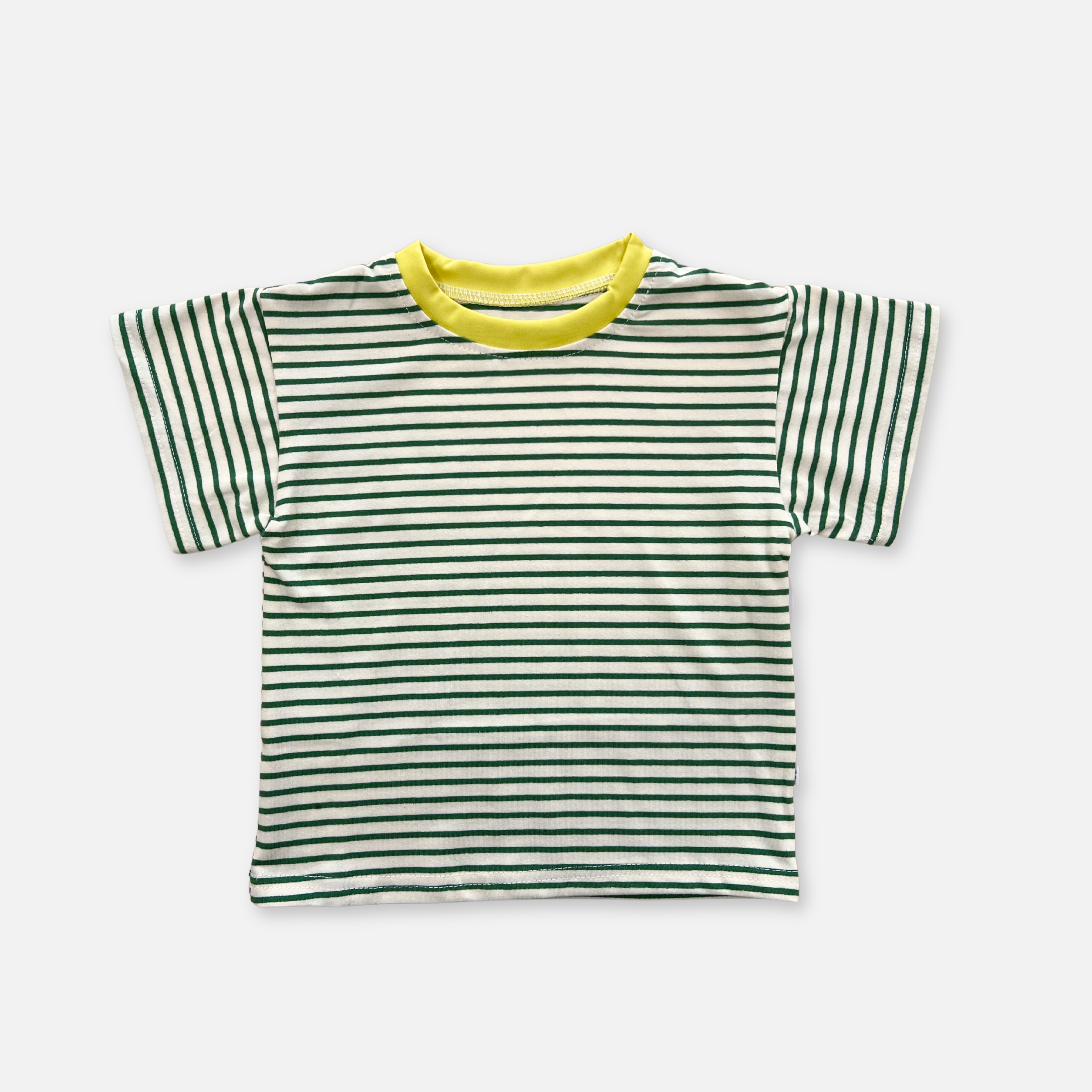 Classic stripe tee with sweet pastel colors. Comes in 2 color ways and available in sizes 12M-4T.