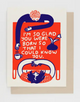 3.5” x 5". Letter-pressed by hand on archival-quality card stock with a bubblegum envelope.