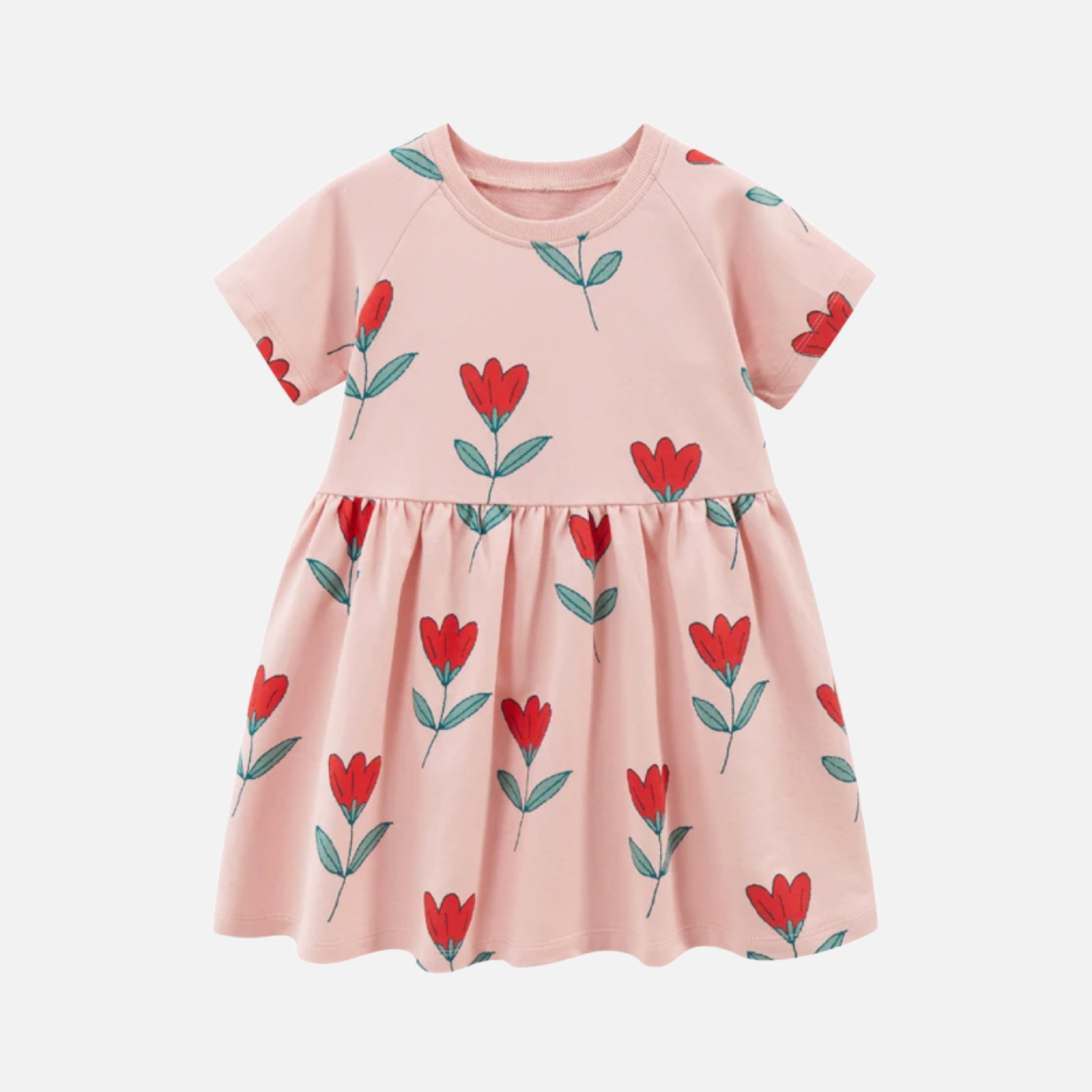 Bloom into style with this Little Tulips Cotton Dress! Featuring adorable tulip prints and made from 100% cotton, this comfy dress is perfect for layering all year round. Stay cute and cozy with this must-have addition to your wardrobe.