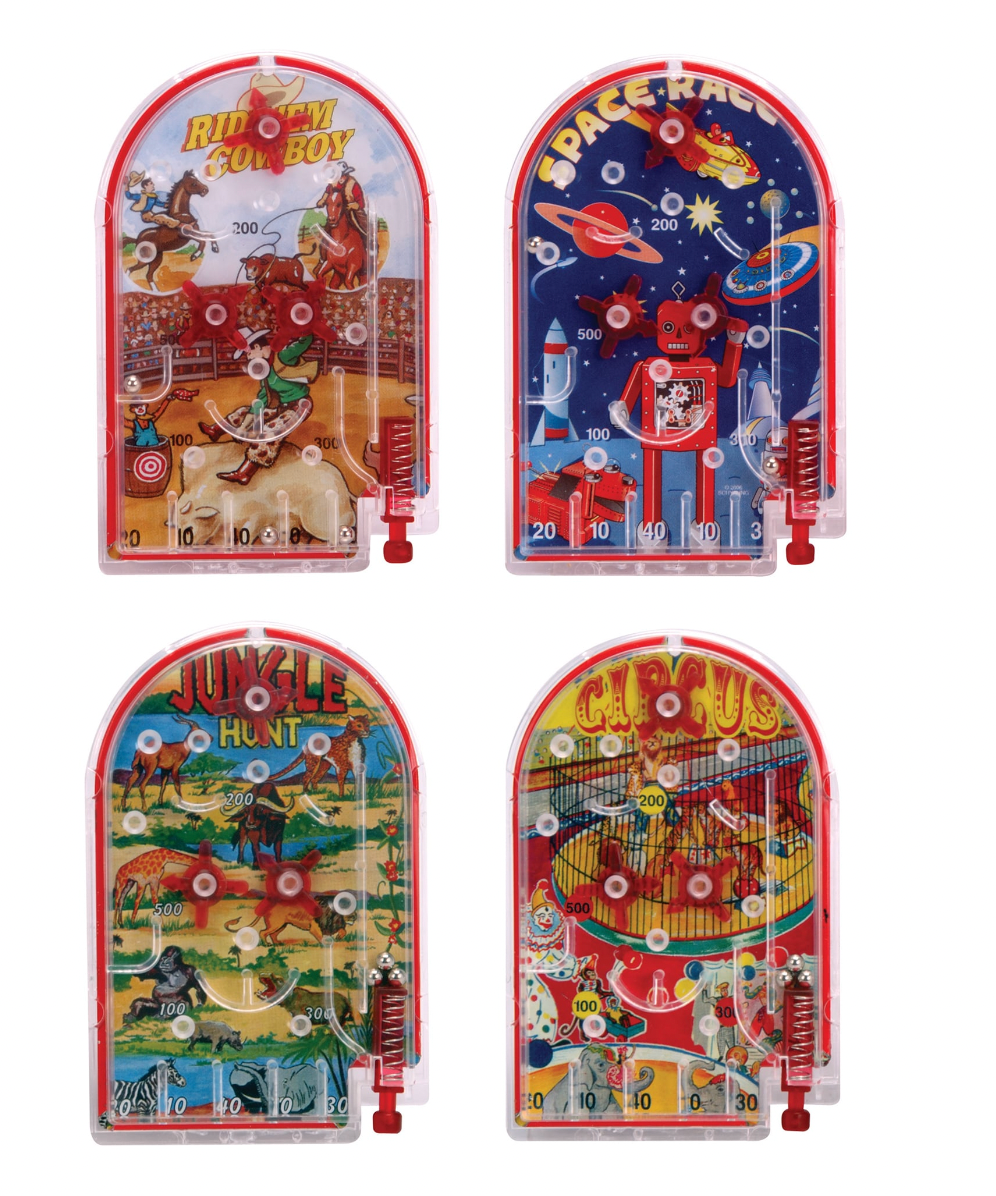 Challenge your skills and your friends with our fun pinball games! These mini pin ball games are portable and colorful. Just pull the launcher to set the ball into motion. Available in assorted styles. Each sold separately.