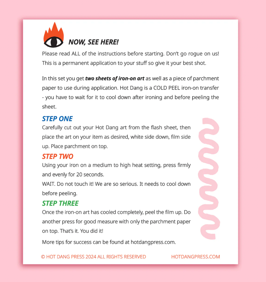 Each buddy set includes two sheets of the displayed illustrations, heat protective parchment paper for application, and easy peasy instructions. You bring the heat! All you need is an iron.