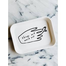 A beloved design from People I've Loved in a functional catchall tray! This 5x7" Bamboo Melamine Tray combines practicality with artistic charm, offering a stylish solution for organizing your essentials.