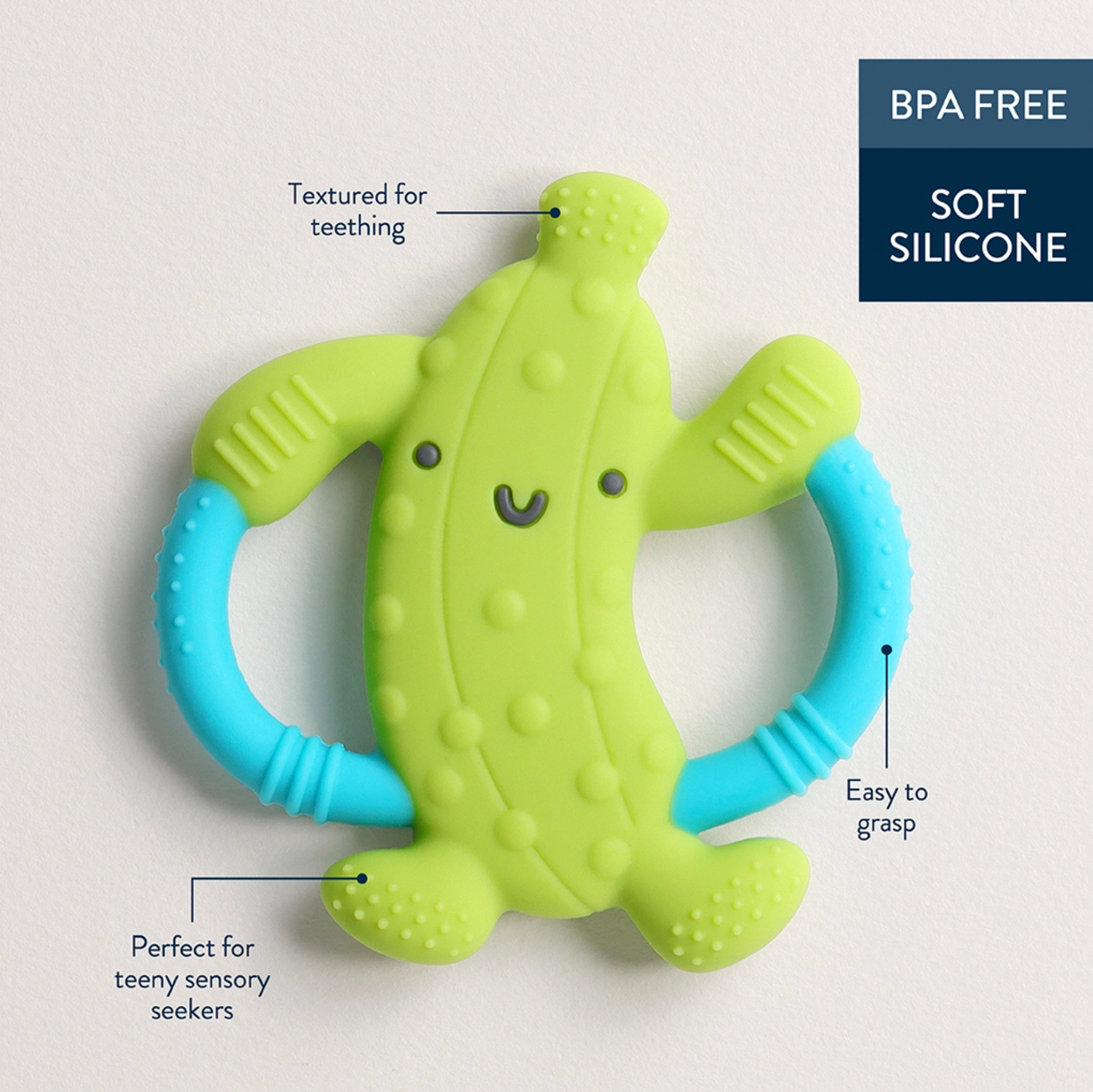 Parker the Pickle! Bid farewell to teething troubles with Itzy Ritzy’s Chew Crew™. Crafted with easy-to-hold handles, this teething companion offers soothing relief with a comfy grip for your baby`s teething journey.