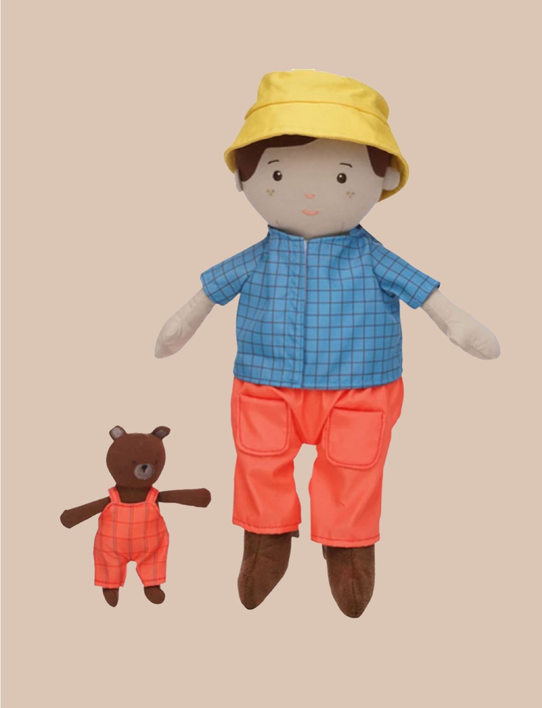Playdate Friends Alex has a removable outfit and bear companion that are all 100% machine washer and dryer safe! Outfit includes hat, booties, t-shirt and pants with closure in front for easy removal. Plus, Alex features a sewn-on white onesie with embroidered buttons. A perfect gift for young toddlers, as they can play all day and wash them away. Doll play encourages motor development and nurturing role-play.