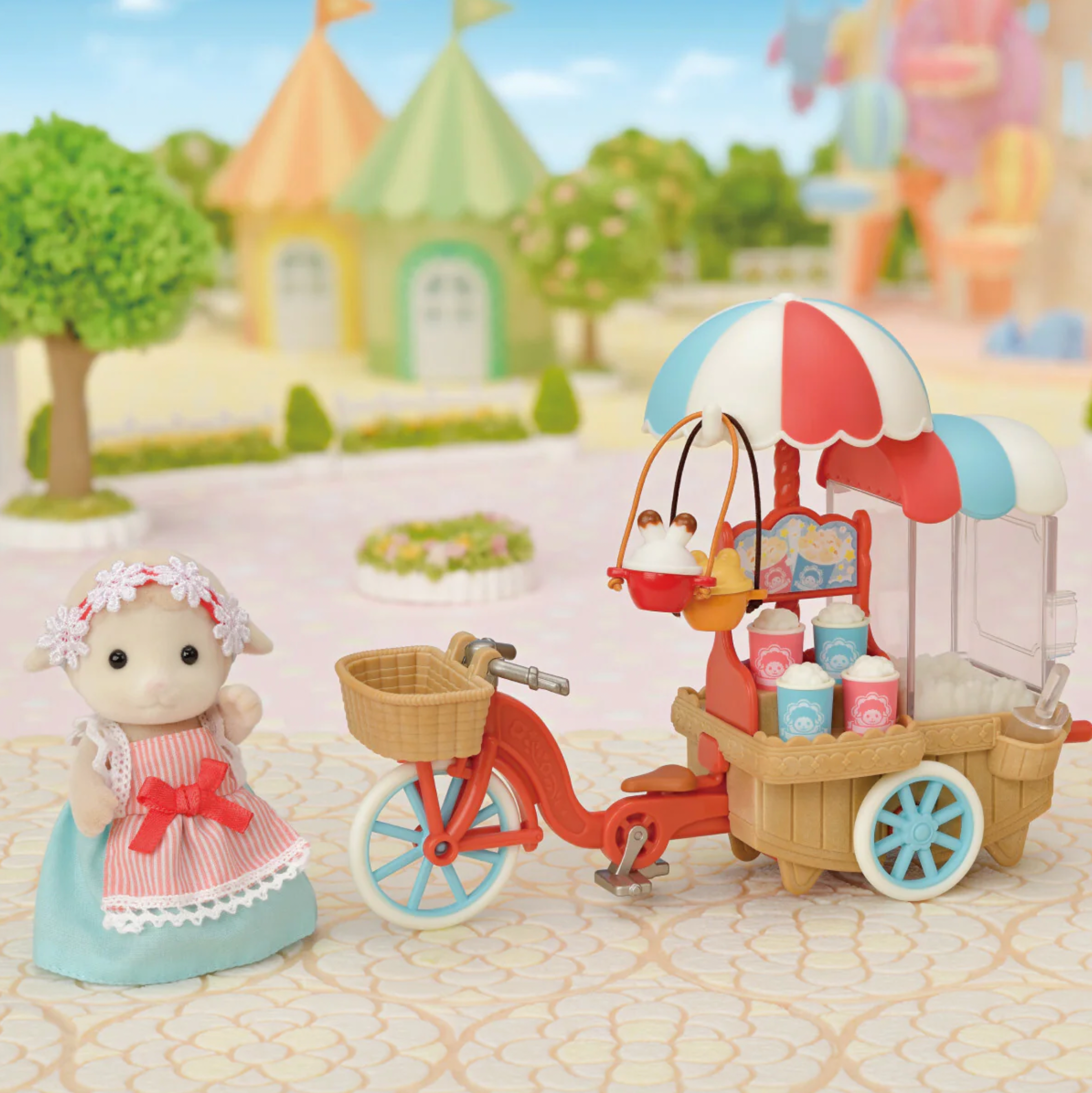 This ready to play set includes poseable Sheep Mother figure dressed in removeable clothing, along with trike and popcorn to sell at the Amusement park! Barbara sell popcorn from a special bike and the children get excited everytime she arrives! The smell of the butter! The sound of the popcorn popping! And it taste so good! The children were looking forward to her tasty treats so much that they start eating it right then and there. Its a good thing the popcorn is in a nice sturdy box, so they can save some for later! Play together sets from the Amusement Park Series including Ice Cream Van, Baby Amusement Park and more!