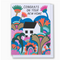 There's something magical about a little house tucked in the woods and this beauty takes the notion to the extreme. Vibrant gardens of green, blues and neon red rear up around a tidy little house. This special housewarming card reads Congrats on your New Home in our own hand drawn typeface inspired by vintage French signage.