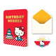 Showcases colorful Hello Kitty artwork with a happy birthday written in decorative gold foil
