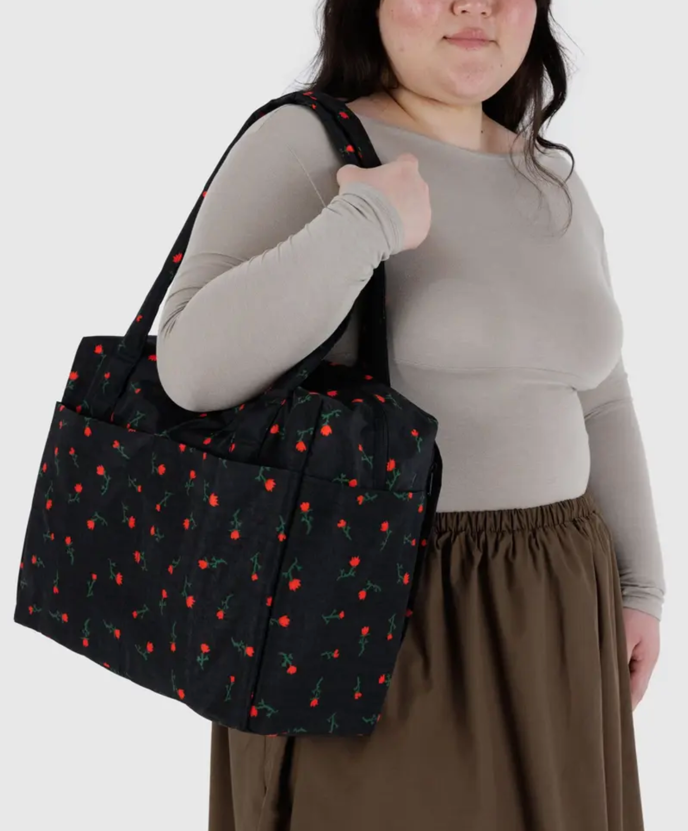 A travel bag optimized for flying: it fits under an airplane seat, on top of your roller bag, and on your shoulder. Exterior pockets keep your travel essentials within reach, including a tech pocket that fits up to a 16” laptop, and side pockets for your water bottle and boarding pass. The bag packs down into its interior detachable pouch for easy storage.