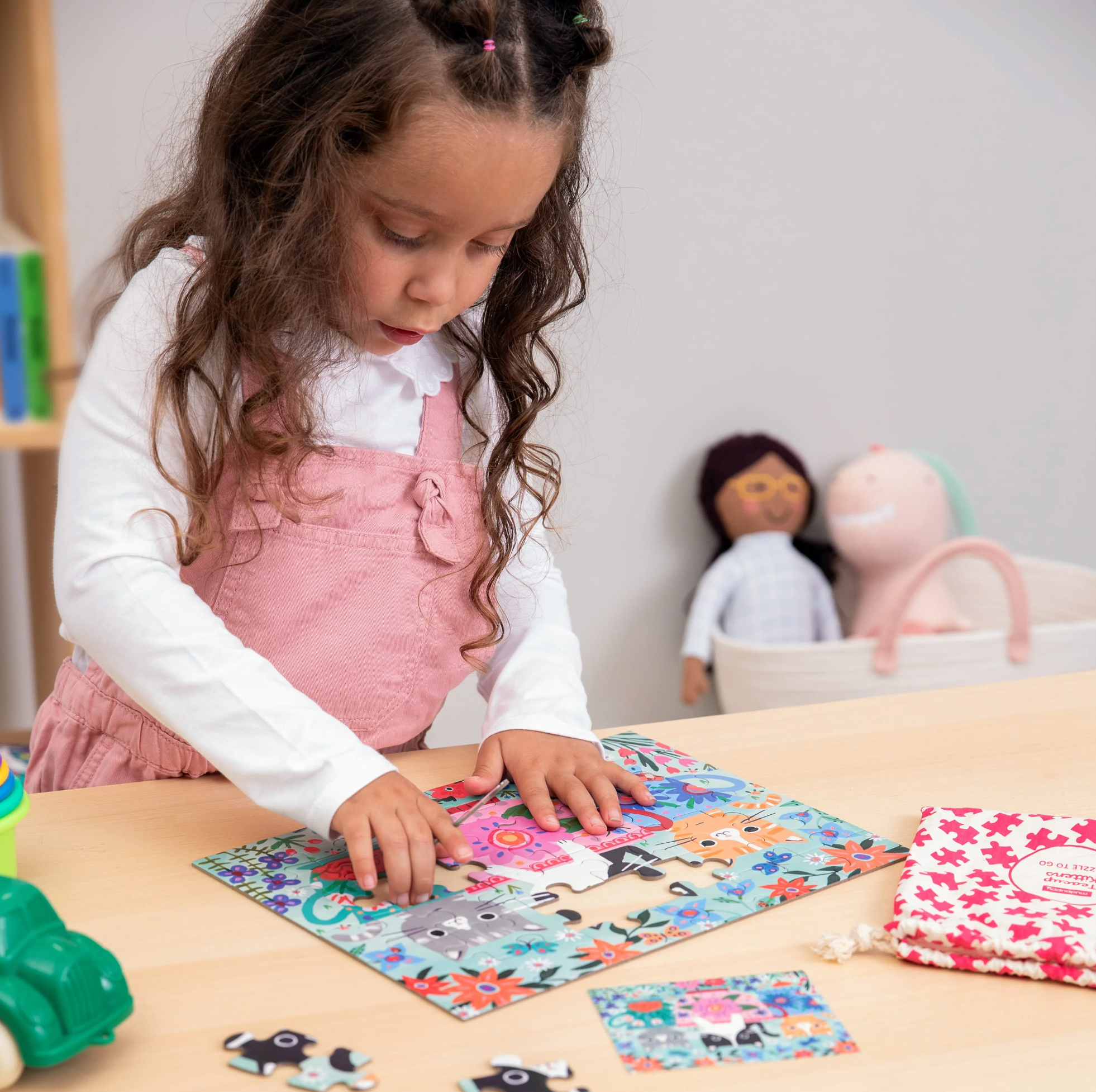 Puzzling on the move has never been easier with Mudpuppy's Teacup Kittens 36 Piece Puzzle to Go. Packaged in a travel-friendly 100% cotton drawstring pouch, this puzzle makes for a travel-friendly activity that will keep children entertained on trains and planes! When fully assembled, this puzzle fits on standard airplane trays, so your little one can puzzle while on the move! This artwork features a winning combination of charming cats and colorful florals.