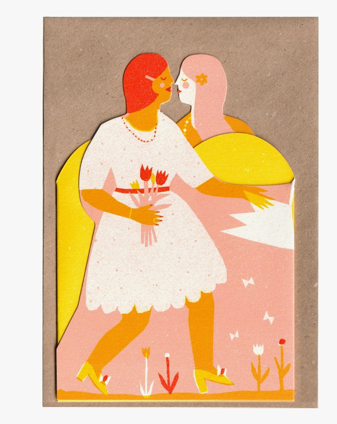 Celebrate the love between two gorgeous girls with this wonderful concertina card. Fold out to display your message in the big heart!