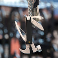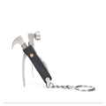 This little hammer packs alot of punch. Each hammer includes a flat head screwdriver, bottle opener, knife, claw, wire cutter, and pliers. The handy keyring makes bringing it on the go easy! Black color.