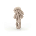 Modelled on Bashful Bunny herself, she features the same pink suedette nose, and soft fur made from recycled fibres. When given a gentle shake, her rattle will sound, delighting little ones.