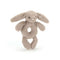 A treat for tiny hands, Bashful Bunny Ring Rattle can be held by its soft limbs, long lop ears or ring-shaped tummy.