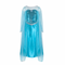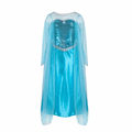 Sparkle in the cold with the new crystal Queen dress! the crystal Queen dress features a sequin sweetheart bodice, lined for comfort, with crystal organza sleeves. The peacock blue satin flows right to the floor with silver trims finishing the entire dress. This dress features a long trailing piece of Sparkle tulle attached at the back and frosted with silver Sparkle stars and trim.