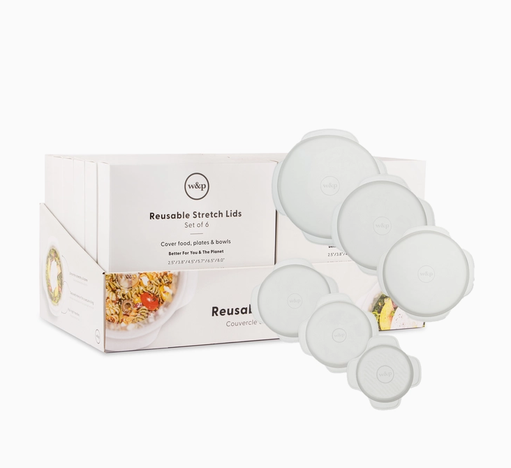 Our Tray Pack Display Version of our Favorite Stretch Lid Set of 6! Order this SKU and product will arrive ready to display in our 12 pack display box! With 6 sizes to fit a range of bowls, pots, and plates, you can easily save meals of any size! Textured grips for an easy snap on- snap off and a secure seal, your fridge will be infinitely odor and spill proof. Plus, with a transparent lid to easily see contents inside, you’ll never forget about that leftover birthday cake again! Each set includes a 2.5", 3.8", 4.5", 5.7", 6.5" and 8.0" circular stretch lid. Freezer safe, dishwasher safe, BPA free, microwave safe, and oven safe