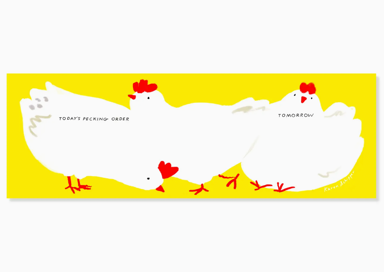 Bright, funny, and full of down-to-earth charm, the Chickens Desk Planner brings a little humor to everyday organization. Three cheerful white hens stretch across the page with sections labeled “Today’s Pecking Order” and “Tomorrow,” turning daily priorities into something fun and light. The bold yellow background and playful chicken illustrations make this planner pop on your shelves, giving your shop display a warm and lively touch that customers instantly notice.