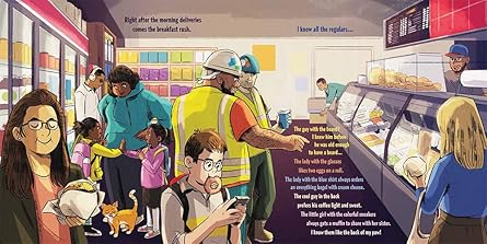 In Bodega Cat, a cat named Chip takes us through his bustling workday at the Matos family's bodega: from receiving boxes in the morning and the breakfast rush, through counting inventory and making deliveries, to dinnertime with his family, when Papi cooks up some of the best Dominican food in the borough for their friends and neighbors. There is no rest for this busy kitty...except for when it's time to chase pigeons with his brother Damian, or to take the occasional nap on the potato chip bags.