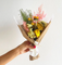 Hello home decor! This dried flower bouquet size is perfect for a small vase at home. This traditional petit dried flower bouquet is the perfect mix of dried and/or preserved flowers and other seasonal textures.