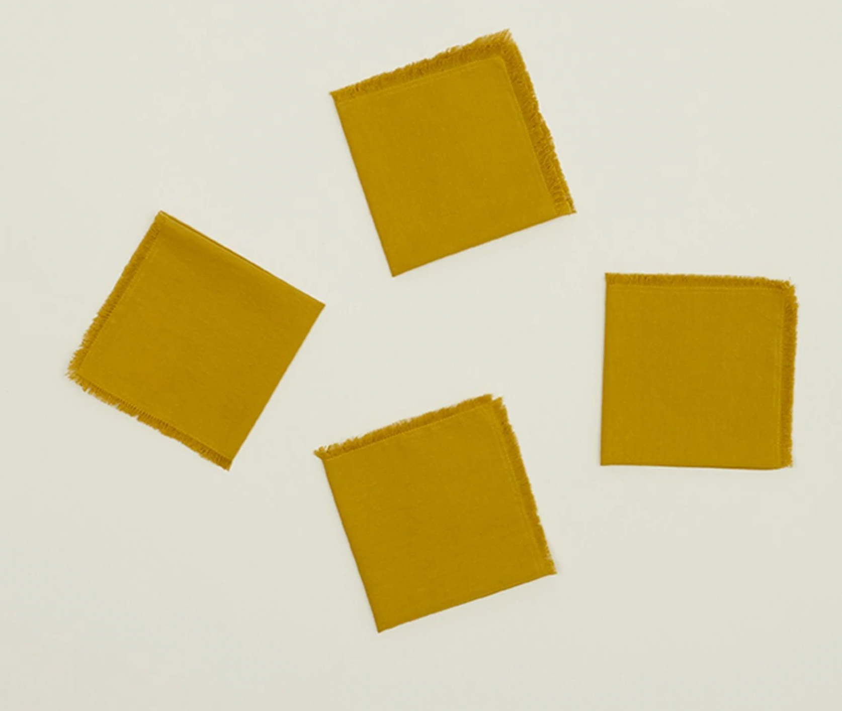 - Set of 4 cotton dinner napkins, with a soft fringed edge