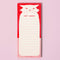 Notepads! For all your to-do lists that you don't really wanna do, this glowering cat is here to help. Features 15 lines to detail all your business with 52 tear-off sheets on a chipboard backer. Risograph printed in bright red and light mauve.