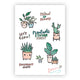 Cards are 4.25 by 5.5 and blank on the inside. They come with a coordinating envelope. Paper is recycled and made in the US using sustainable energy.