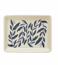 5-1/4"L x 4"W Stoneware Plate w/ Botanicals, Blue & Cream Color