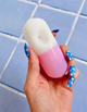 This strawberry shaped piece fits perfectly in the palm of your hand. Handmade with detailed green leaves and black spotted seeds.