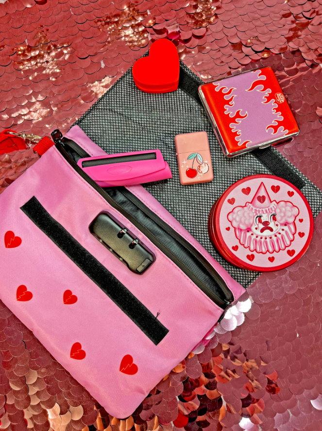 This bag has got it all- it's smell proof and waterproof. Inside the bag there's two side pockets in addition to the main pocket. The bag can be sealed with velcro and a zipper and comes with a lock so your goods stay extra safe. The bag's even got a wristlet strap.