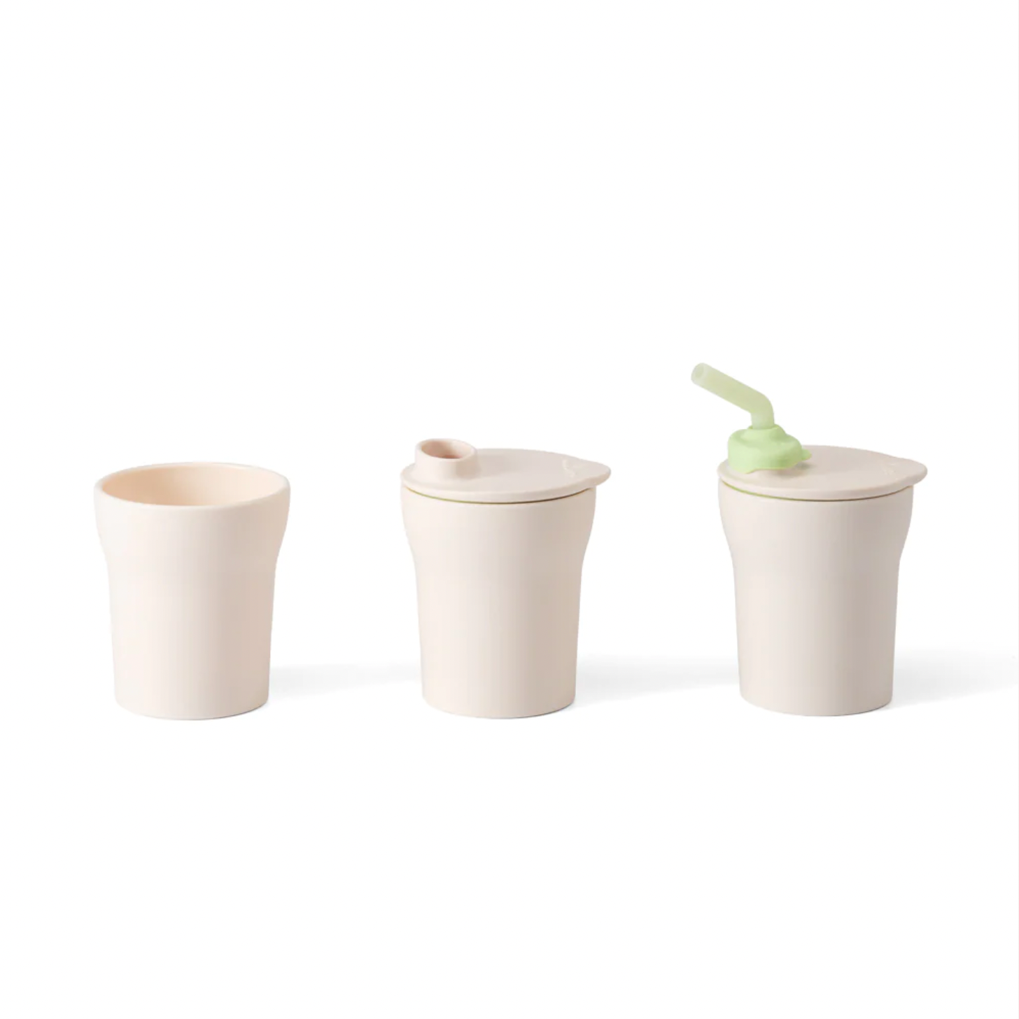 At first a child can sip from the silicone straw, which is soft and feels good against gums and teeth, then move on to practice tilting and drinking from the Lid + Spout and finally master a real cup on their own.