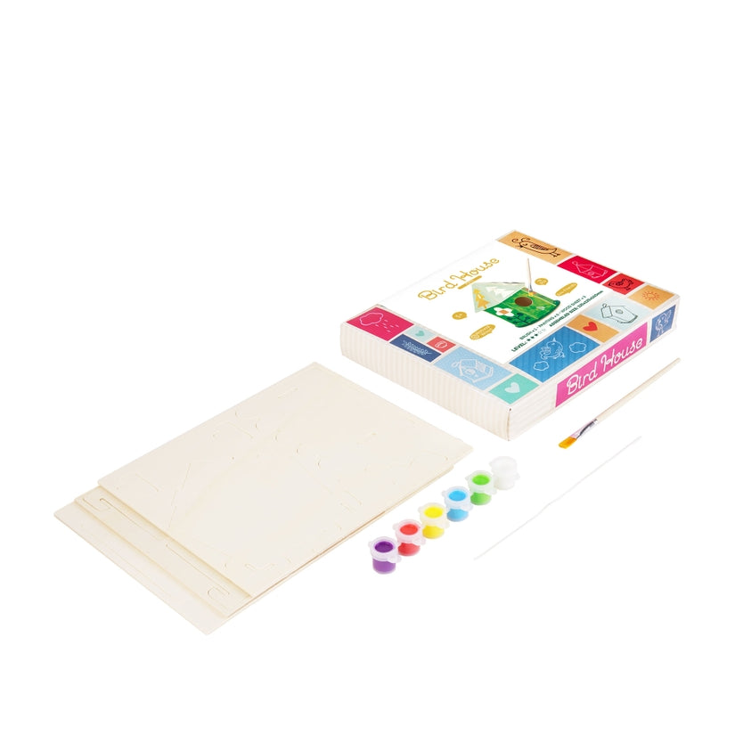 DIY 3D Wooden Birdhouse Building Puzzle with Paint Kit. Suitable for ages 5 and up. Features: • Natural quality wood • Safe and durable • Stimulates children creative • Improves imagination of kids • Classic appearance • Best for gifting purpose • Easy to play Specification: • Material: natural wood • Recommended age: 5 years and up • Assemble size: 4.9 x 4.9 x 6.3 in (125 x 125 x 160mm). Package includes: • 6 x paint colors • 3 x wooden sheets • 1 x brush