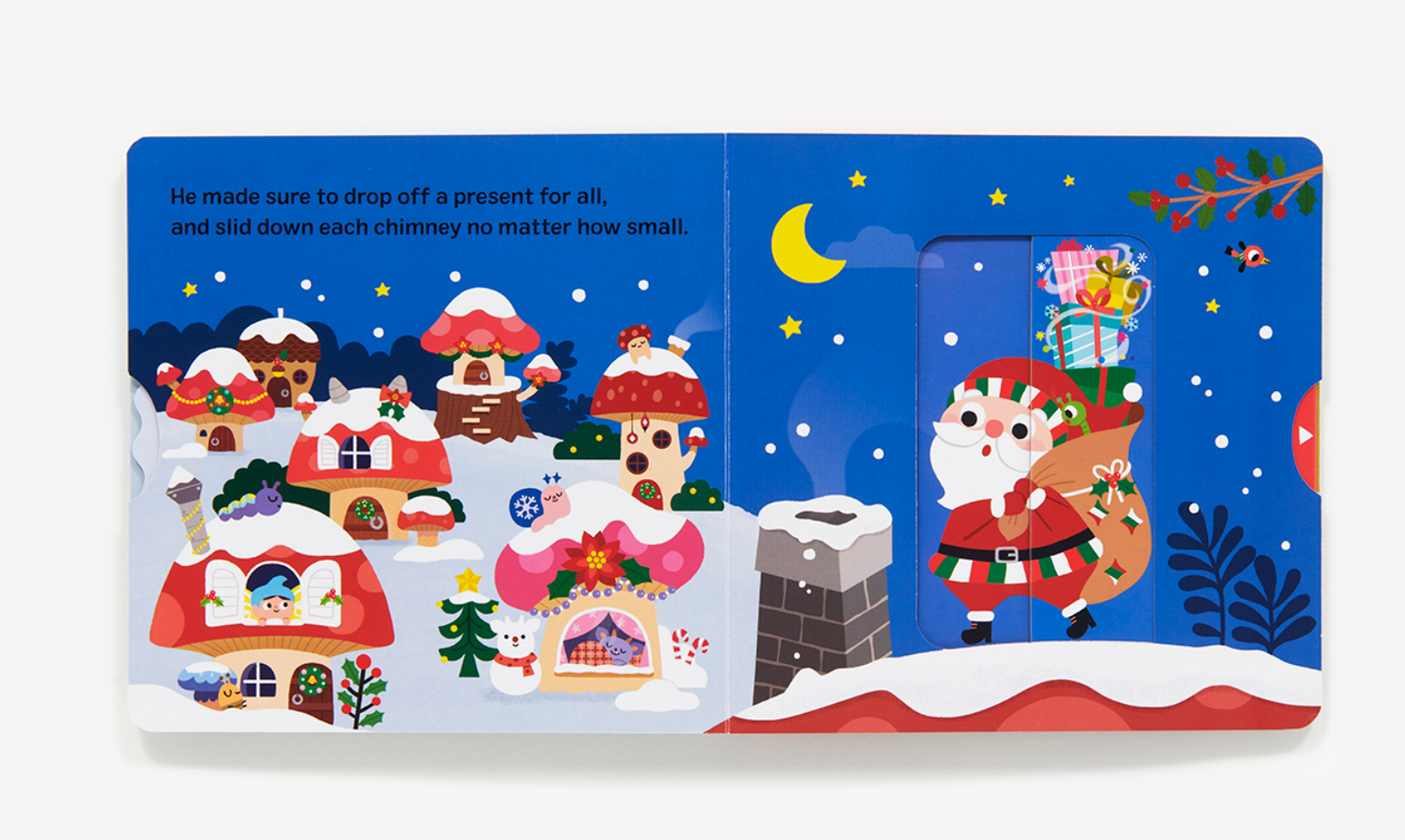 Push, pull, spin, and slide your way through Santa’s Christmas Eve ride! With gifts piled high on his sleigh, watch as Santa delivers his presents in a single night—soaring from house to house with the help of his elves and his magic.