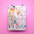 In a magical setting, rainbows, Lily, and her wonderful world come to life... For the first time, OMY's drawings are adorned with fluorescent pink. An artistic space without limits for coloring alone or with others, to spread out on the floor, hang on the wall, or use as a tablecloth.